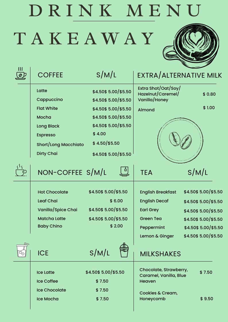 The coffee selection is impressive, with favorites like the Latte and Mocha, each priced at A$4.50, ensuring every sip is both comforting and invigorating. For those seeking a more hearty fare, options like the Beef Burger Grilled and Protein Brekky shine brightly, showcasing quality ingredients and thoughtful preparation.